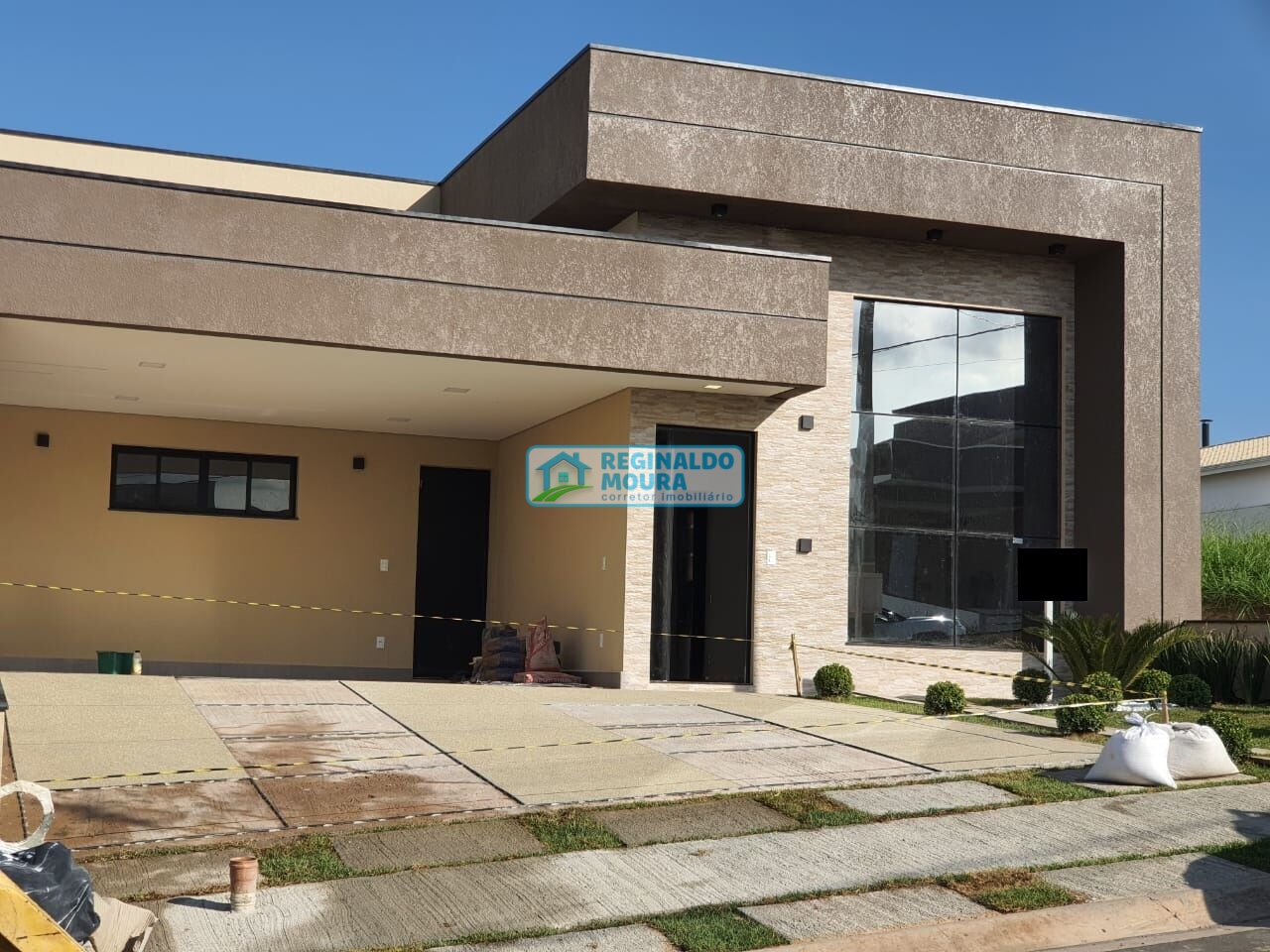 Residência com uma fachada moderna, janela em pele de vidro, porta social pivotante em alumínio preto, jardim com paisagismo, com 3 suítes, sendo à suíte master ampla com closet planejado, espelho e mesa de maquiagem, domo de iluminação natural com detalhe em Led, no corredor de acesso às suítes você tem muito armários/roupeiro, com espaço home office bem funcional, sala 2 ambientes com pé direito 5m, inclusive na cozinha tipo americana, bancada em granito preto São Gabriel, equipada com cooktop e forno elétrico marca Continental, com móveis planejados, nicho máquina lava-louças, ponto de água no nicho para geladeira e na bancada para o filtro de água, torneira monocomando, despensa, lavabo com pia esculpida e espelho, área gourmet com churrasqueira a carvão, piscina 2,5 m x 4 m, com cascata, luz de Led, filtragem automatizada e chuveirão, área de serviço e lavanderia com porta de fechamento automatizada, garagem para 4 veículos sendo 2 cobertos com piso fulget na rampa, porta de acesso à cozinha, com tomada para carro elétrico já instalada dentro da especificação, casa de gás.