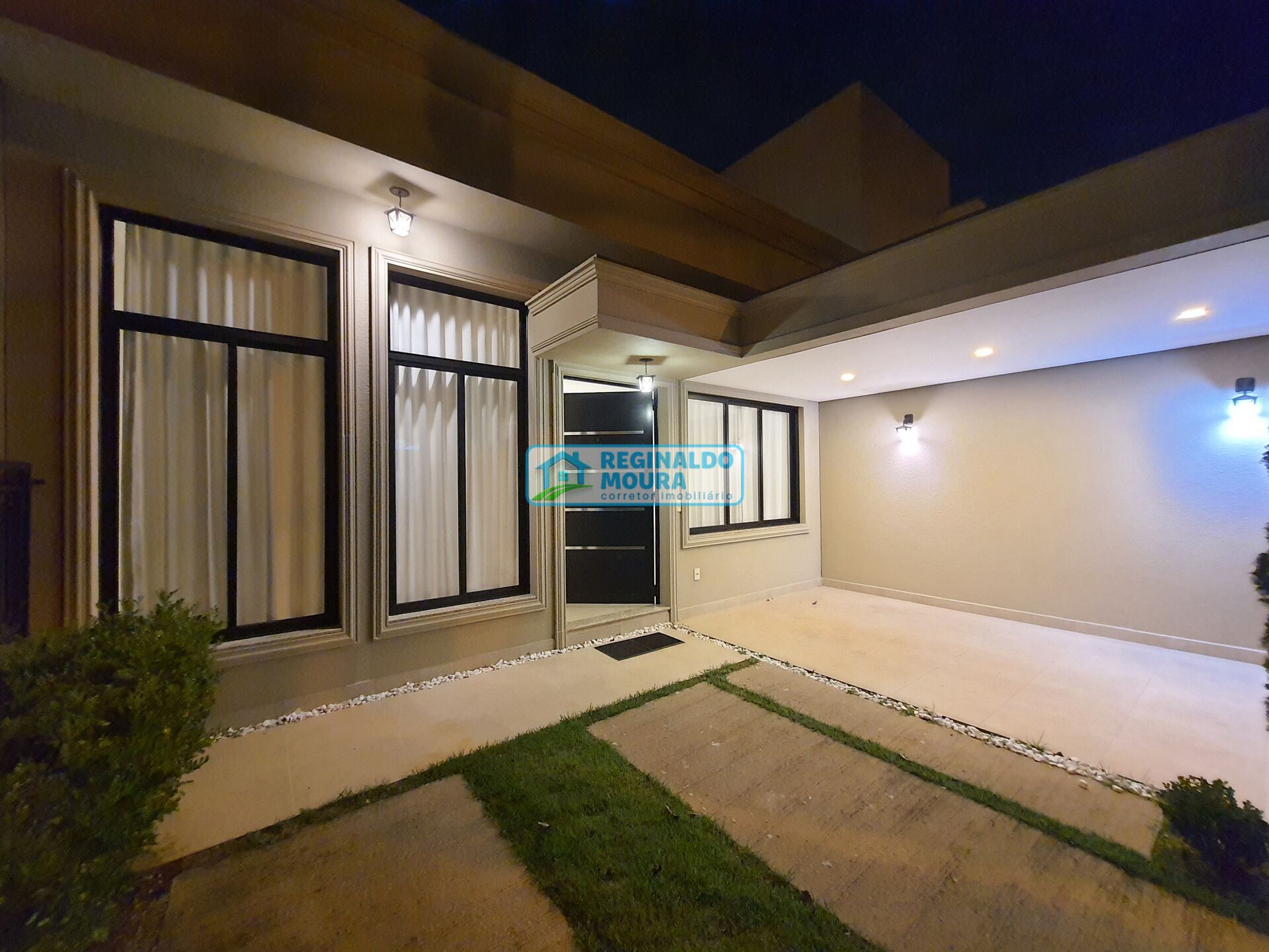 Com uma fachada no estilo clássico com linhas elegantes e sofisticadas na Arquitetura, o efeito visual criado é único, valorizando o imóvel, a forma e a simetria, elegante e convidativa, aliado ao paisagismo do jardim frontal e as janelas em alumínio e esquadrias sob medida cor preta.